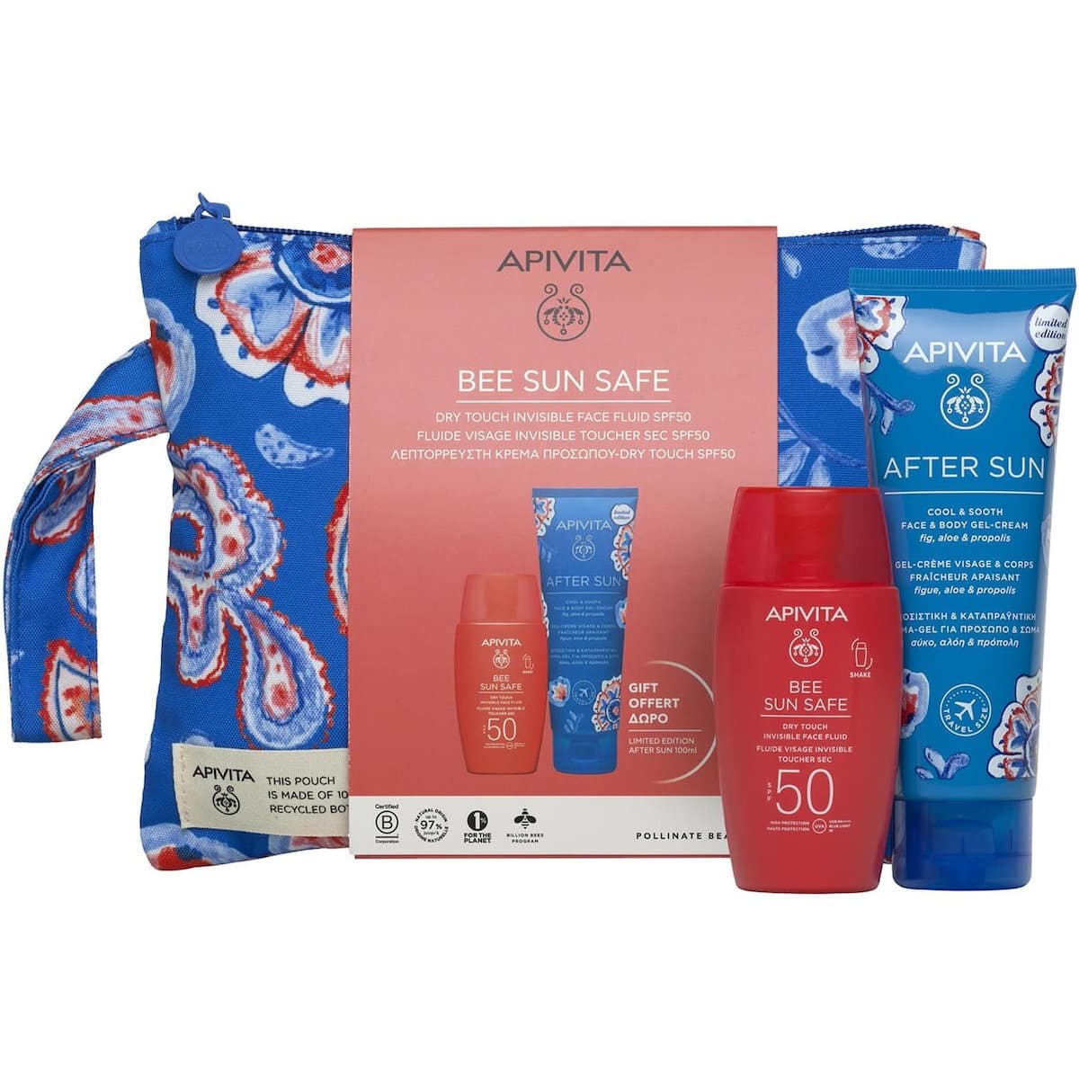 Apivita PROMO Bee Sun Safe Dry Touch SPF50+ Thin Liquid Face Sunscreen 50ml & After Sun Travel Size 100ml