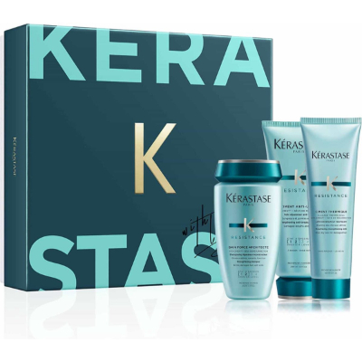 Seti Kérastase Resistance përmban një Bain Force Architecte (250ml), një Ciment Anti-Usure (200ml) dhe një Ciment Thermique (150ml). Seti elegant i dhuratave ofron paketën perfekte të rindërtimit për flokët e pajetë dhe të dëmtuar. Ndihmon në rindërtimin e strukturës së brendshme të flokëve dhe për këtë arsye forcimin e flokëve. Kombinimi i shampos, kondicionerit dhe trajtimit të lëmuar siguron që flokët të mbrohen përreth.