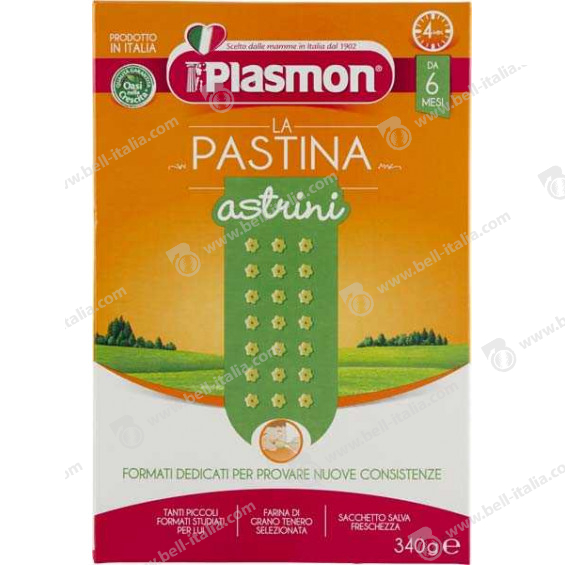 Makaronat e vogla Plasmon Astrini për foshnjat dhe fëmijët e vegjël janë një vakt ideal sepse janë më të tretshme se makaronat normale për të rriturit.